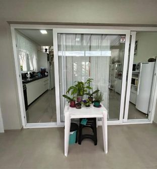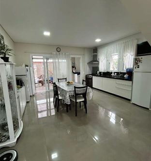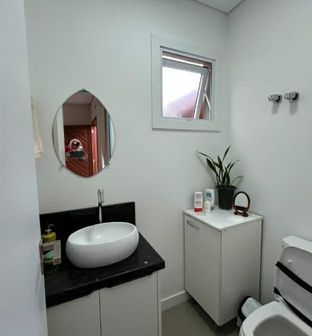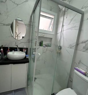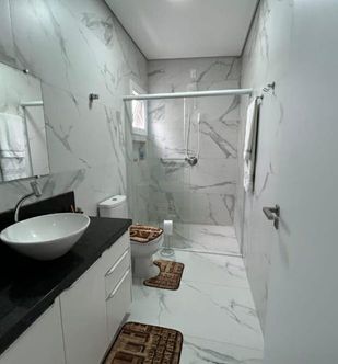 Com garagem coberta, esquadrias em pvc branca, piso laminado banheiros com box, já instalado.